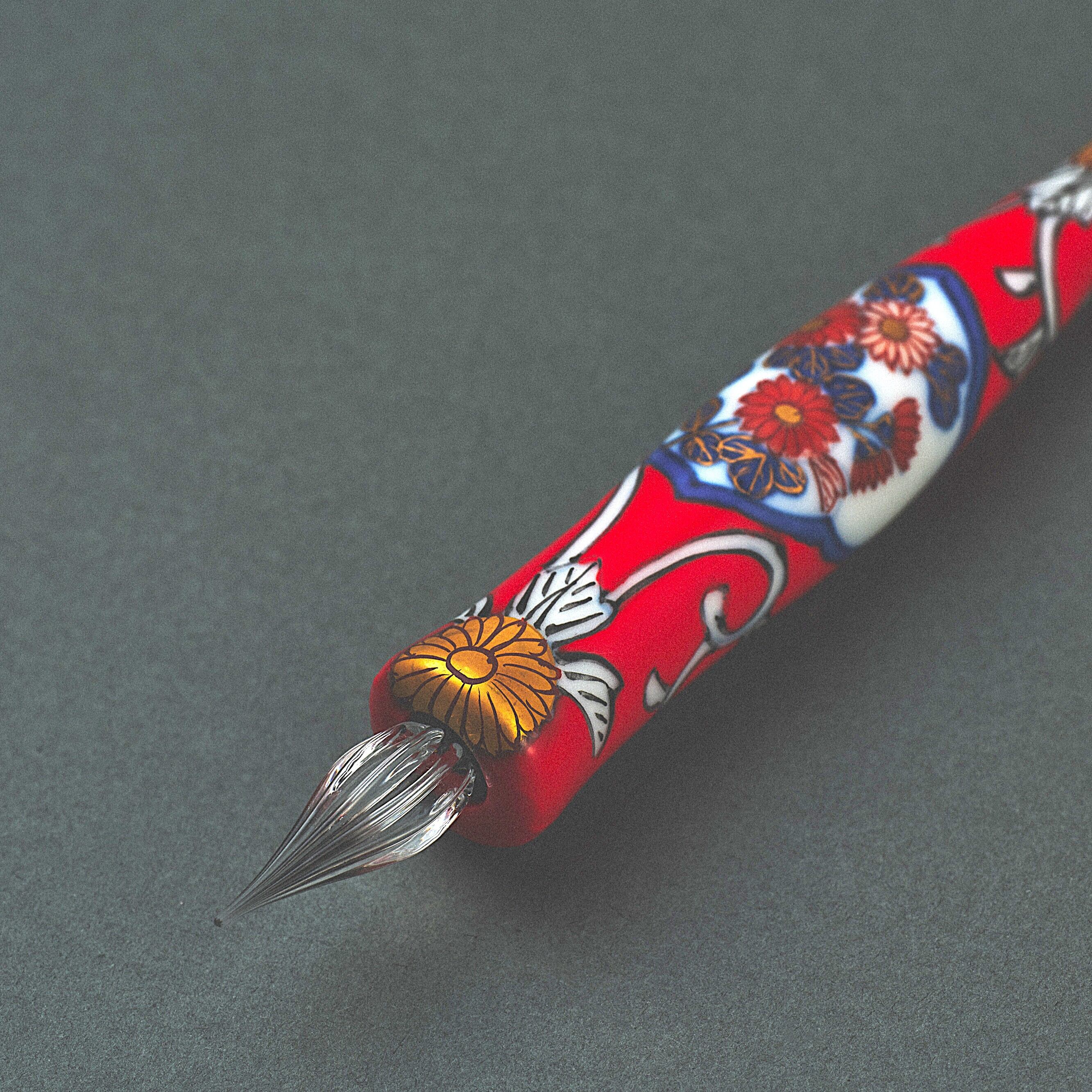 とても繊細な手書きで絵付けされた伊万里のガラスペン。