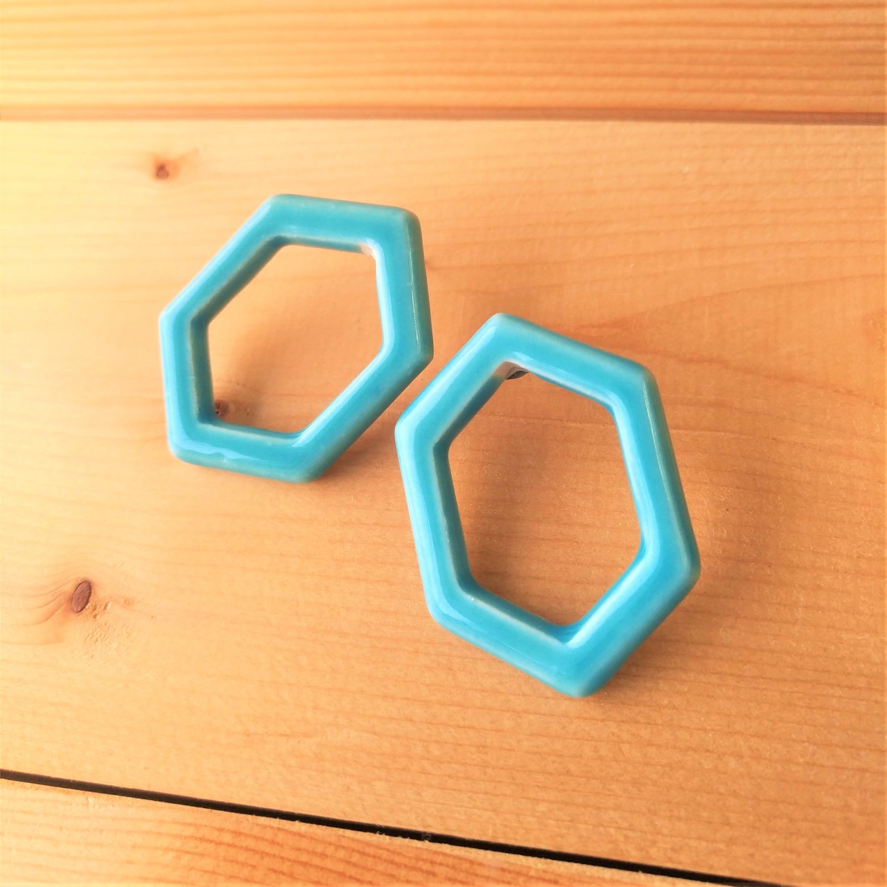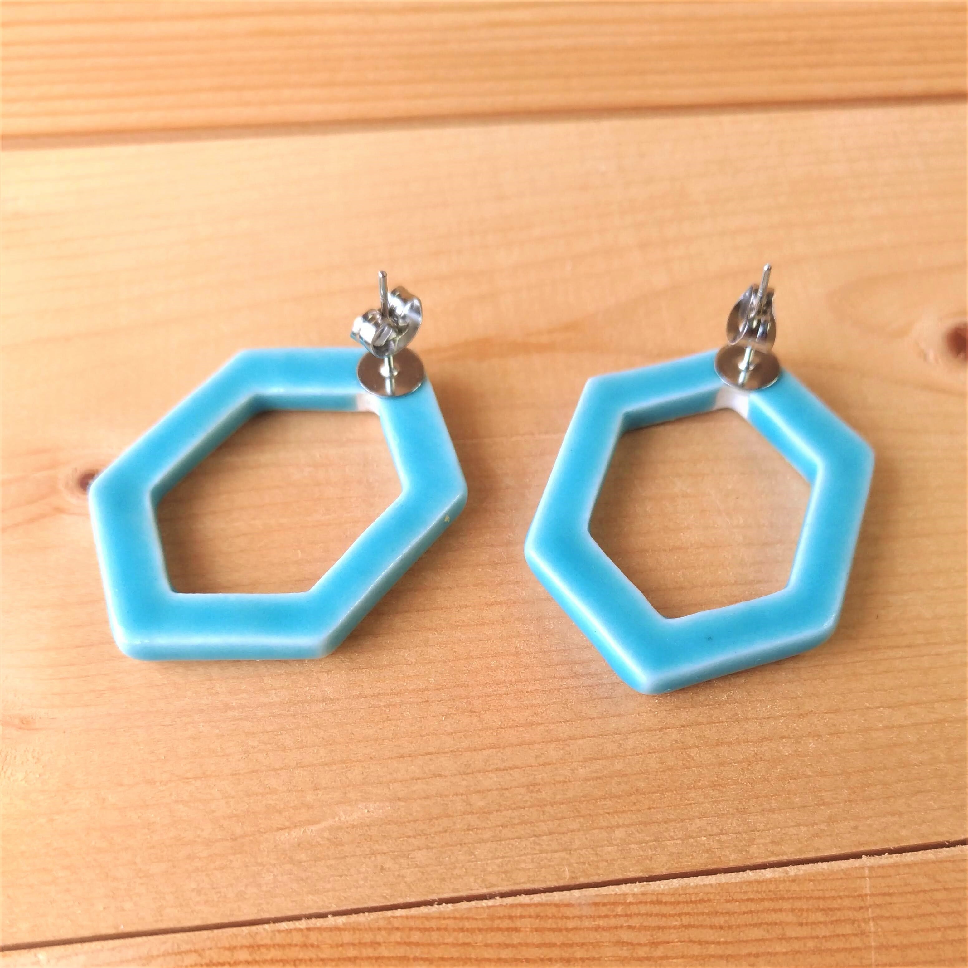 有田焼ステンレスピアス ヘキサゴン(水色)
