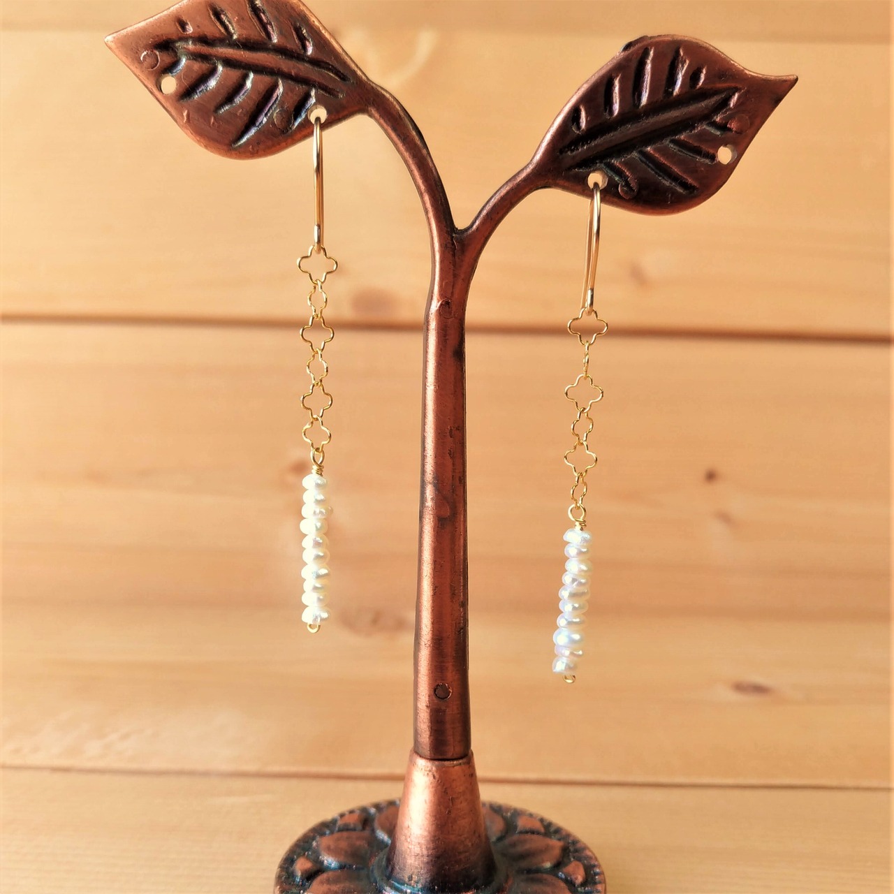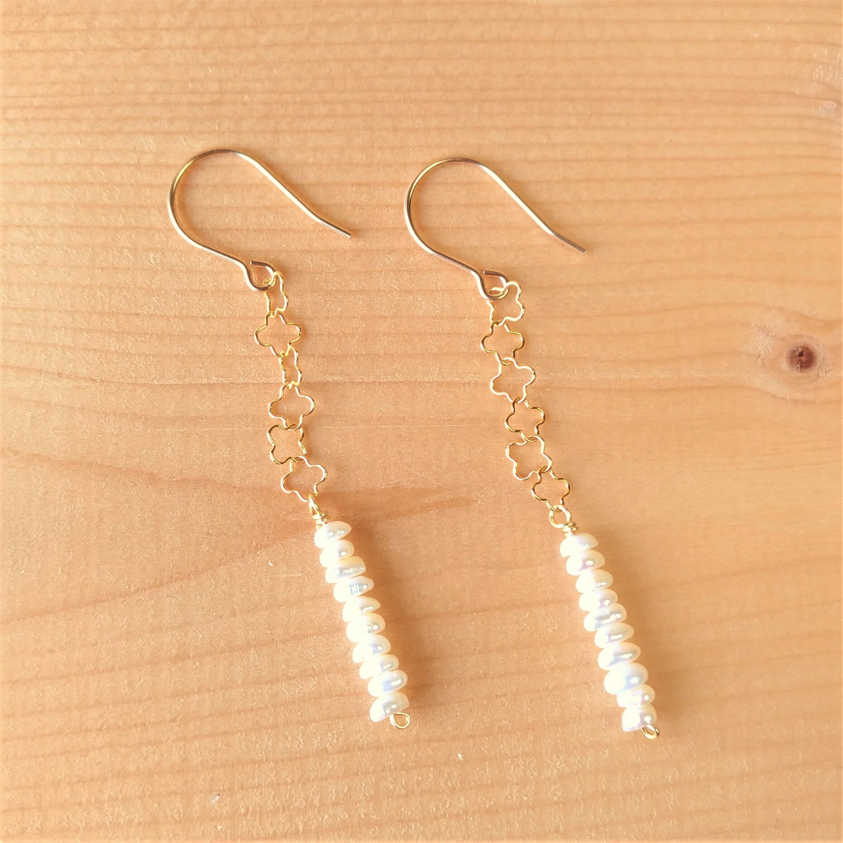 花柄チェーンに小粒の淡水パールが付いたゆらゆら揺れる可愛らしいデザインです♪