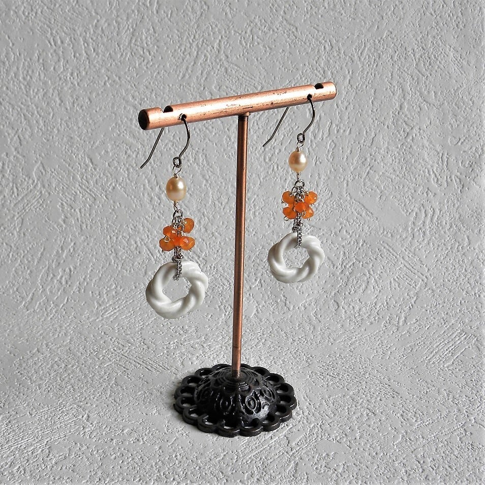 オリジナル陶磁器有田焼パーツと天然石を使用した揺れるピアスです。