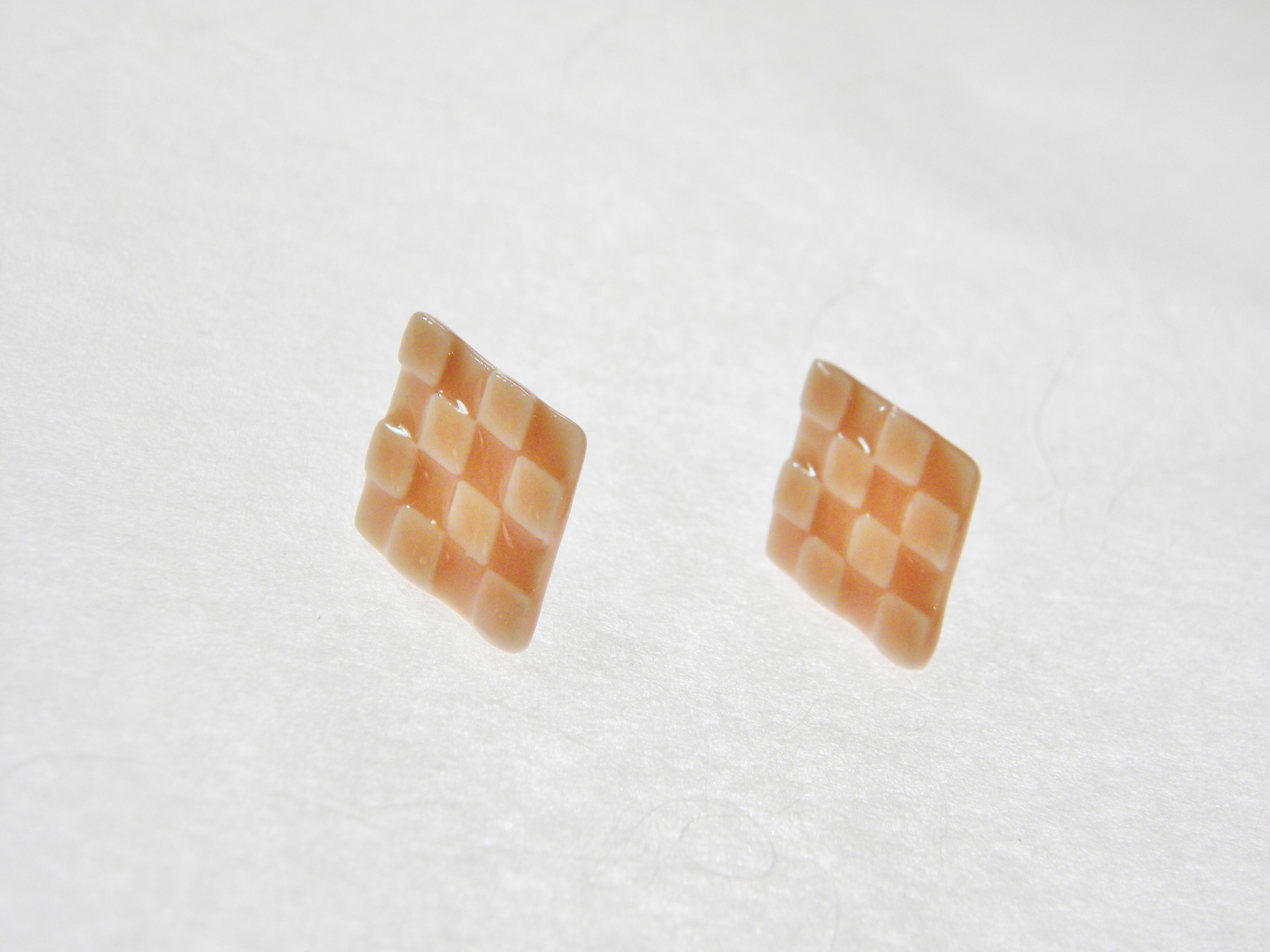 シンプルで市松模様の凹凸の陰影が、さりげなく浮かんで見える素朴な雰囲気のピアスです。