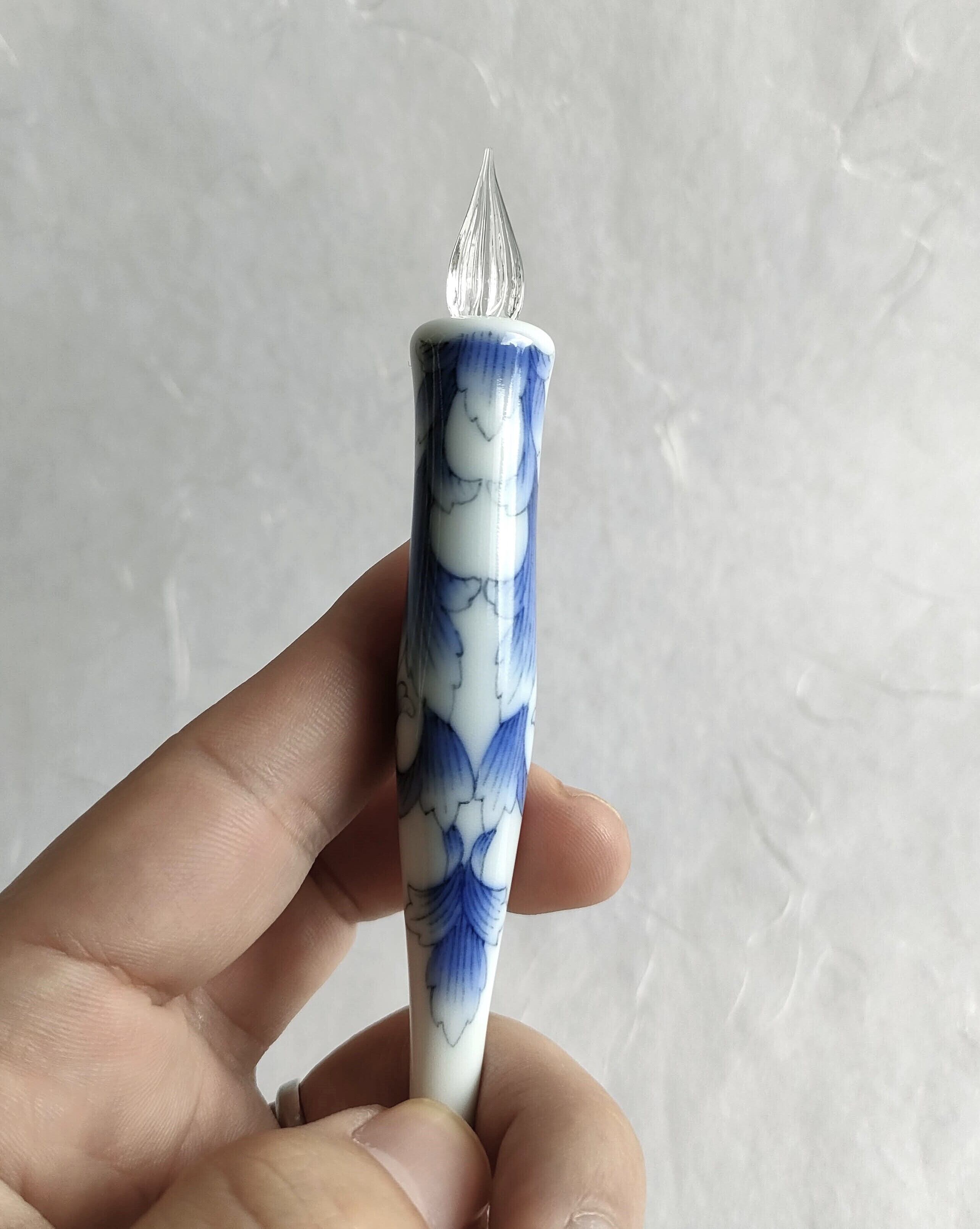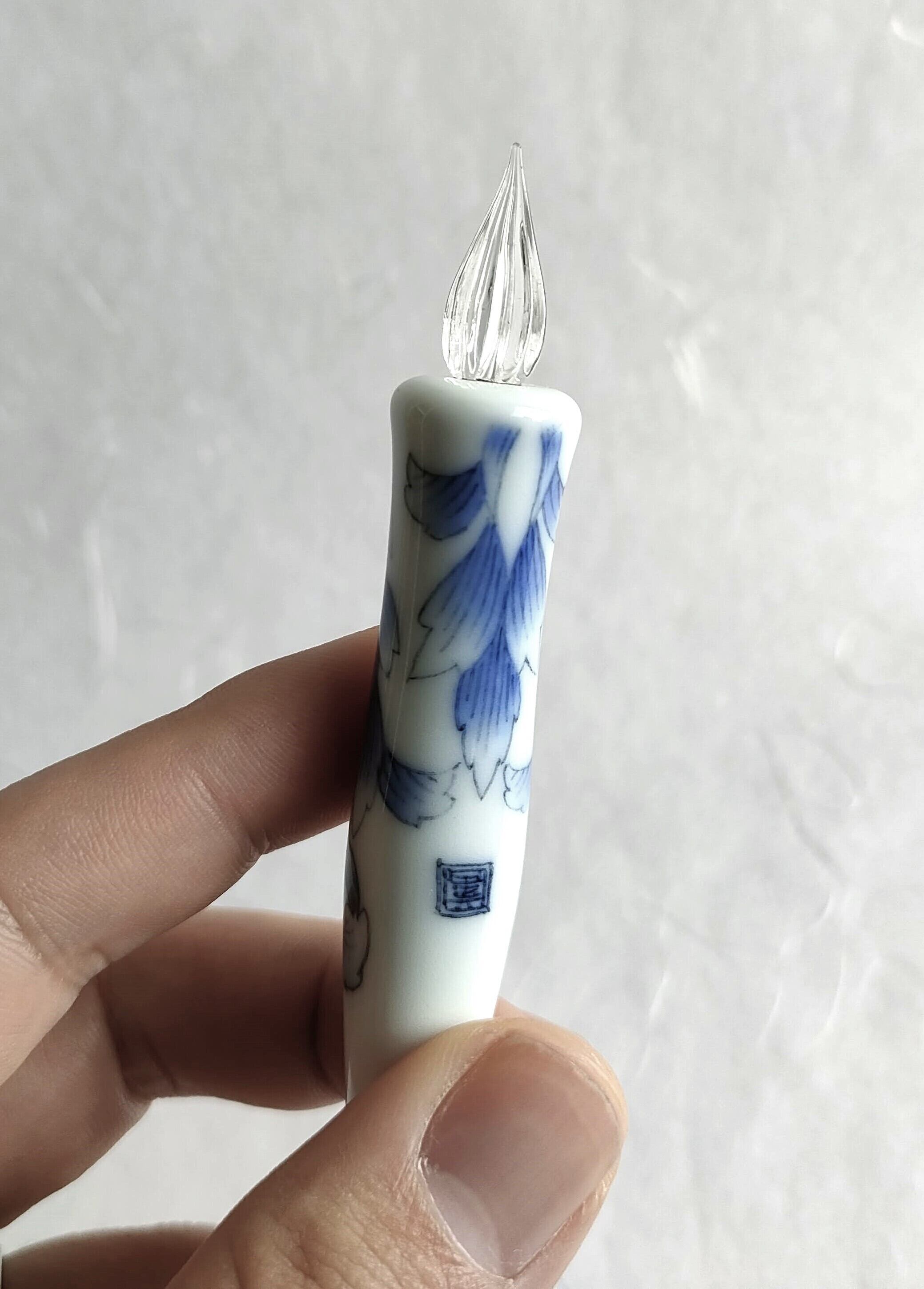とても繊細な手書きで絵付けされた伊万里のガラスペン。