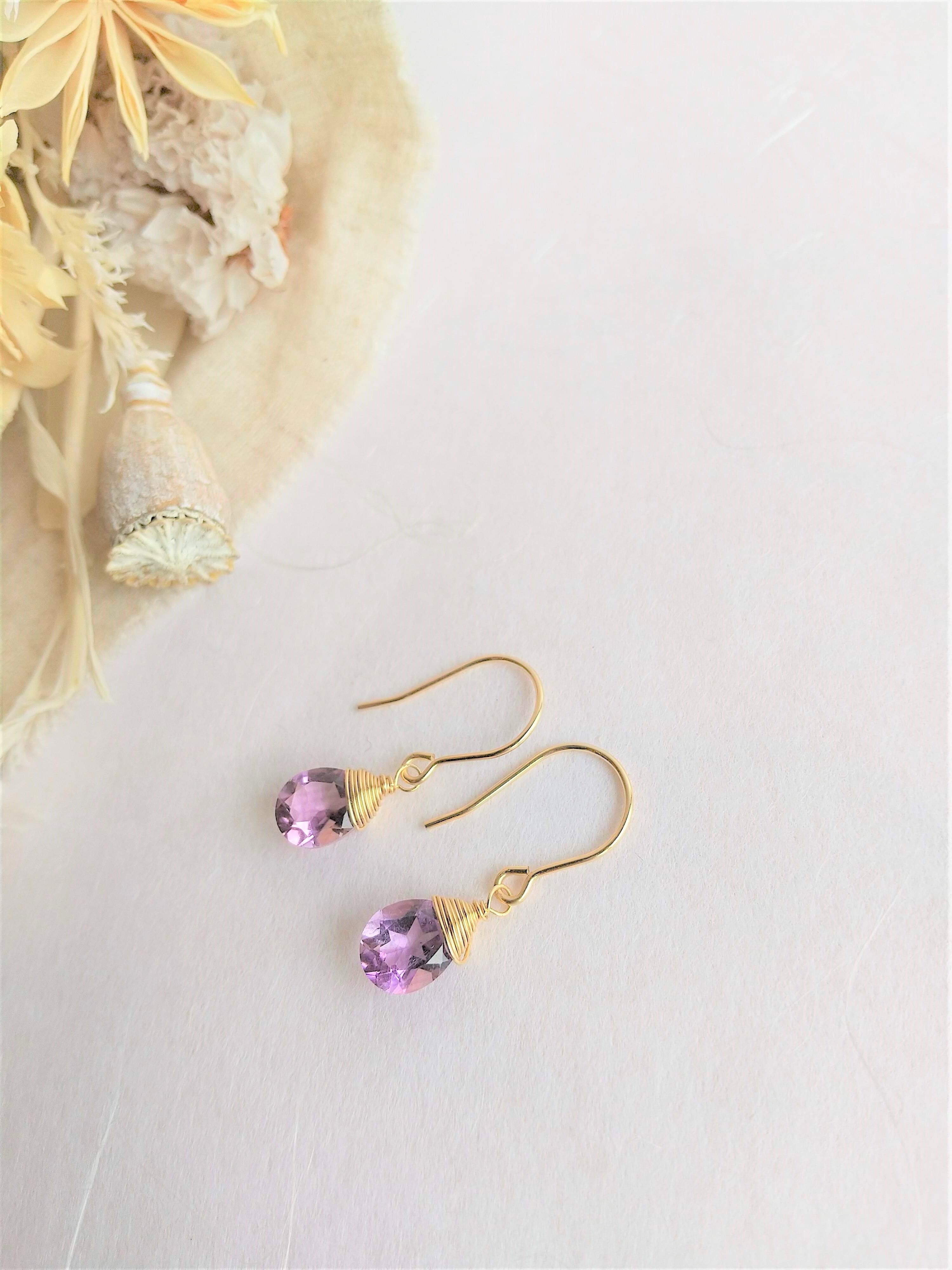綺麗なカットのアメジストを14kgfワイヤーでアクセサリーにしました☆