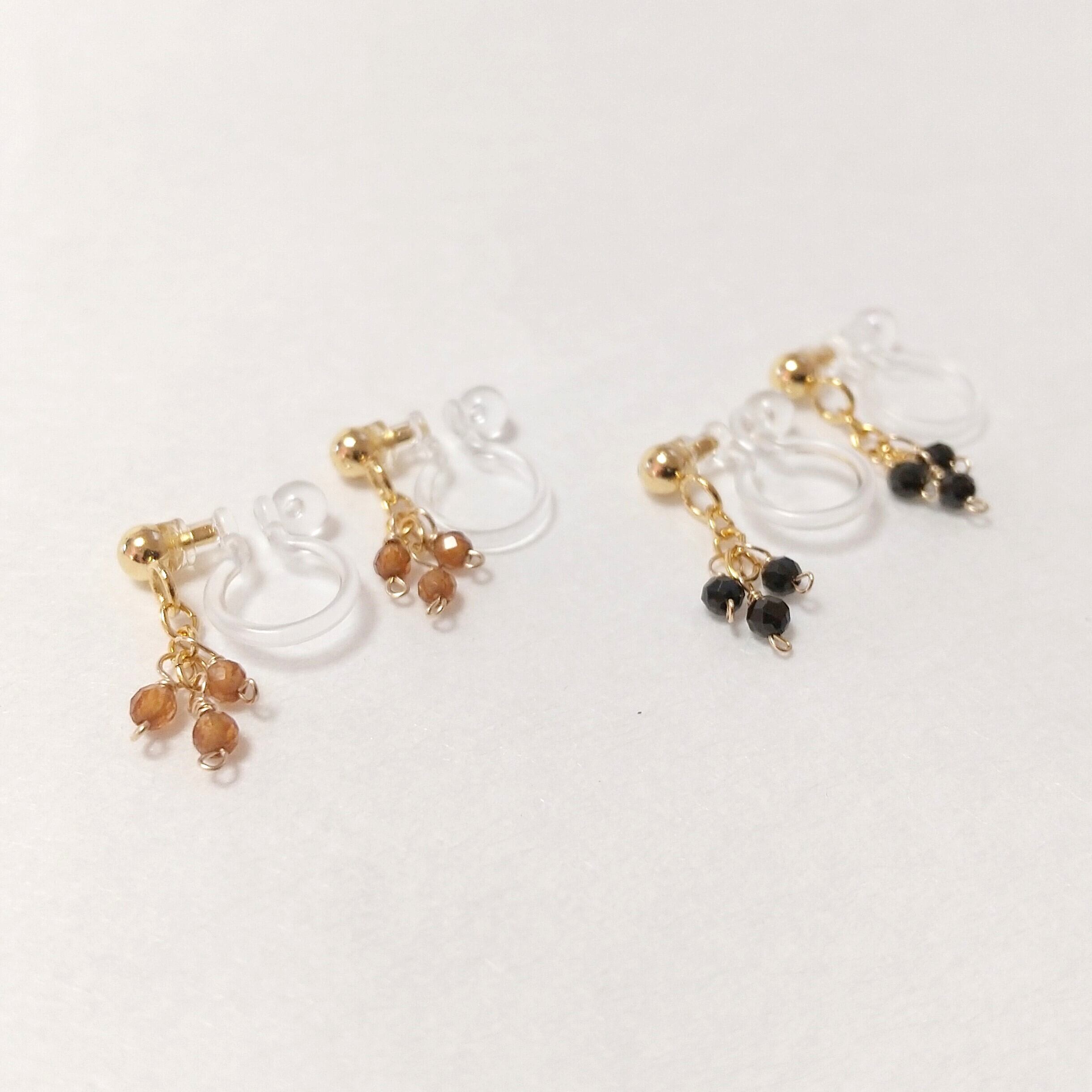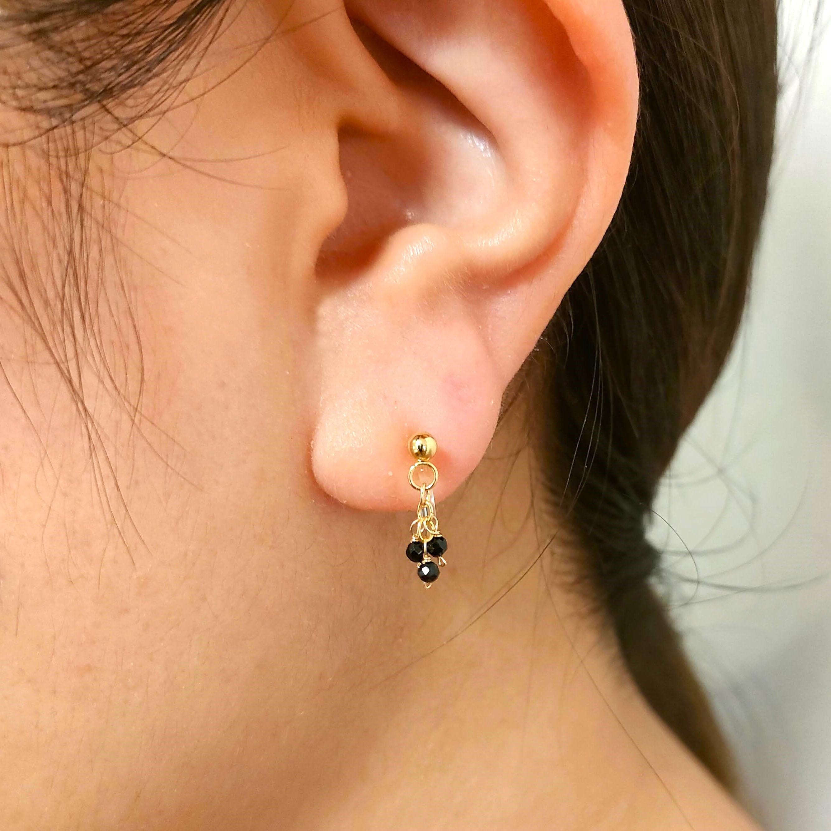 14kgfオレンジガーネットとブラックスピネル イヤリング2セット